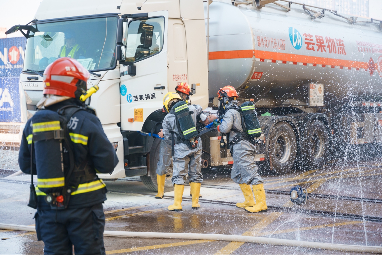 11月21日,2025年長沙市鐵路專用線道口;肥鹿示C合應(yīng)急演練在長沙新港公司舉行,演練由長沙市交通運(yùn)輸局主辦,長沙新港公司承辦,長沙市市生態(tài)環(huán)境局、開福區(qū)消防救援大隊(duì)、長沙泰和醫(yī)院參加。 演練模擬一輛裝有甲醇二甲胺的;凡酃捃嚱(jīng)過鐵路道口時(shí),因雨天路滑發(fā)生事故,導(dǎo)致裝載物泄露,一名司乘人員被困車內(nèi),一列火車即將通過道口,情況十分危急。道口值班人員發(fā)現(xiàn)事故后,第一時(shí)間通知車站信號(hào)樓,并緊急采用手旗信號(hào)截停列車,避免發(fā)生二次事故并造成更嚴(yán)重的后果,同時(shí),值班員迅速向長沙新港公司報(bào)告事故情況,包括泄漏罐車的位置、泄漏程度、是否有起火、人員受困或傷亡等信息,長沙新港公司迅速啟動(dòng)應(yīng)急預(yù)案。應(yīng)急救援、警戒疏散等多個(gè)小組攜帶裝備5分鐘內(nèi)集結(jié)完畢,奔赴事故現(xiàn)場處置。隨后,消防救援人員、醫(yī)療救護(hù)人員、環(huán)境監(jiān)測人員等各司其職,聯(lián)合處置了這一起突發(fā)事件。