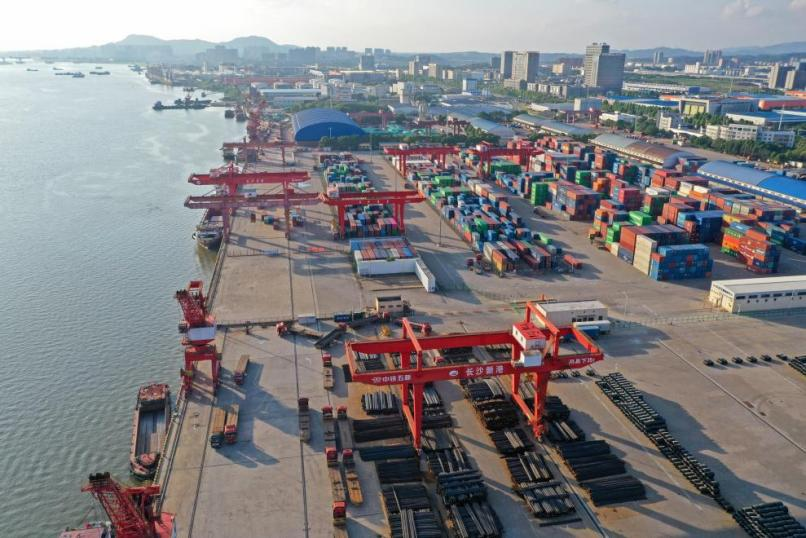 2023年8月,為深度融入、有力推動(dòng)長江經(jīng)濟(jì)帶高質(zhì)量發(fā)展,湖南聚焦重點(diǎn)突破口,以一盤棋思維高位推進(jìn)省內(nèi)港口資源統(tǒng)籌整合,港航水利集團(tuán)作為全省港航資源整合的統(tǒng)一平臺(tái)。2024年2月28日,長沙新港公司正式加入湖南省城陵磯港口集團(tuán),在湖南省港航水利集團(tuán)及湖南省城陵磯港口集團(tuán)黨委的正確領(lǐng)導(dǎo)和大力支持下,長沙新港以完善港口體系建設(shè)、支持地方經(jīng)濟(jì)發(fā)展、提升水運(yùn)占比、降低綜合物流成本為使命,錨定高質(zhì)量發(fā)展目標(biāo),深化改革創(chuàng)新,強(qiáng)化多式聯(lián)運(yùn)優(yōu)勢,充分發(fā)揮黨委把方向、管大局、保落實(shí)作用,團(tuán)結(jié)帶領(lǐng)全司廣大黨員干部和職工群眾,艱苦創(chuàng)新業(yè),開拓爭一流,不斷提升港口綜合競爭力,交出了一份亮眼的“答卷”。從鐵路進(jìn)港到智慧升級(jí),從業(yè)務(wù)拓荒到綠色轉(zhuǎn)型,長沙新港以實(shí)干擔(dān)當(dāng)踐行了內(nèi)河港口轉(zhuǎn)型升級(jí)的生動(dòng)實(shí)踐,共同譜寫了長沙新港高質(zhì)量發(fā)展的新篇章。 一、破局開路:鐵路進(jìn)港激活多式聯(lián)運(yùn)新動(dòng)能 2023年6月,歷時(shí)三年建設(shè)的長沙新港專用鐵路正式通車運(yùn)營,標(biāo)志著省會(huì)長沙首條疏港鐵路全線貫通,徹底打通公鐵水多式聯(lián)運(yùn)“最后一公里”。這一突破性工程不僅讓港口邁入“公鐵水”多式聯(lián)運(yùn)新時(shí)代,更成為撬動(dòng)業(yè)務(wù)增量的核心引擎。專用鐵路開通以來,鐵路貨運(yùn)量從2023年的30.6萬噸攀升至2024年的143.5萬噸,業(yè)務(wù)模式從貨源單一到達(dá)拓展至“雙向物流”,成功引進(jìn)煤炭“散改集”、鋼材“公轉(zhuǎn)鐵”等新業(yè)態(tài),鐵路運(yùn)輸貨物品類增至10余種。蓬勃發(fā)展的多式聯(lián)運(yùn)業(yè)務(wù)助力“一帶一路”、長江經(jīng)濟(jì)帶發(fā)展,初顯成效。