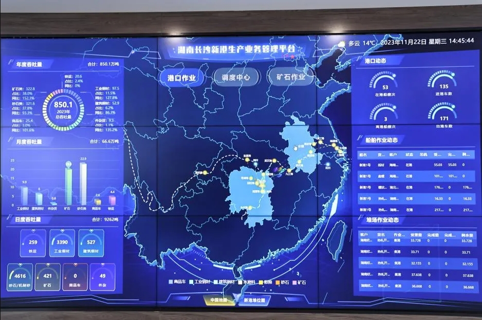 數(shù)字化轉(zhuǎn)型是長沙新港三年變革的鮮明注腳。2023年,長沙新港智控調(diào)度中心和生產(chǎn)業(yè)務(wù)管理平臺全面上線,實現(xiàn)船舶動態(tài)監(jiān)測、港口實時監(jiān)控等智能化管理;2024年,“電永磁鐵吊具”等設(shè)備投產(chǎn),有效提升裝卸效率,降低人力成本;2025年,依托信息化平臺構(gòu)建“數(shù)字港+多式聯(lián)運”模式,提高貨物周轉(zhuǎn)效率,縮短客戶報港、提貨流程。 綠色轉(zhuǎn)型同樣步履鏗鏘。長沙新港在綠色發(fā)展上狠下功夫,認(rèn)真守護(hù)好一江碧水,在實現(xiàn)“雙碳”目標(biāo)方面起到示范性作用。港口累計投入近2000萬元推進(jìn)環(huán)保升級:散貨封閉堆場實現(xiàn)“零揚塵”,岸電設(shè)施覆蓋所有泊位;港口充電樁業(yè)務(wù)穩(wěn)步推進(jìn),促進(jìn)社會運力結(jié)構(gòu)向低碳發(fā)展;散貨碼頭綠化帶復(fù)綠升級,打造綠色港口,描繪生態(tài)底色。 市場突圍:多元業(yè)態(tài)打開增長空間