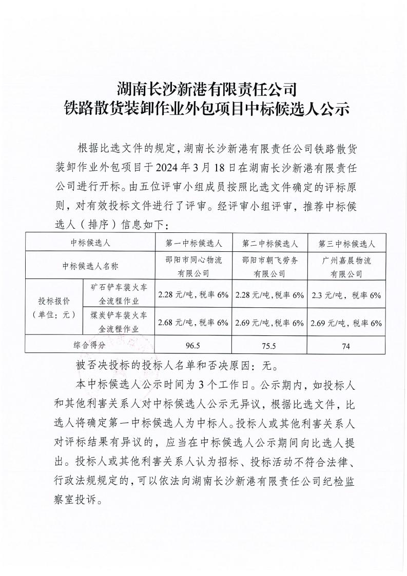 鐵路散貨裝卸作業(yè)外包項目中標候選人公示