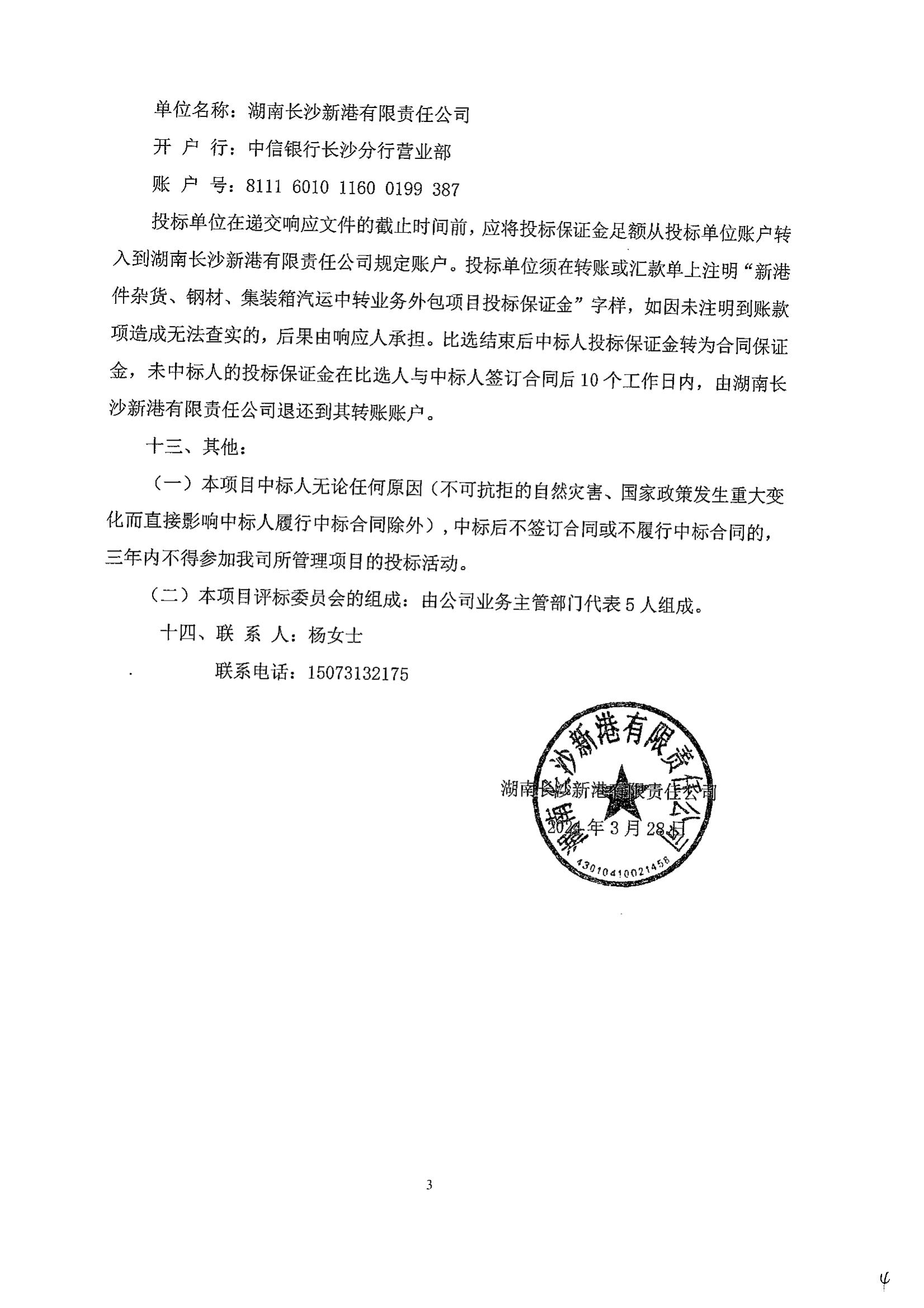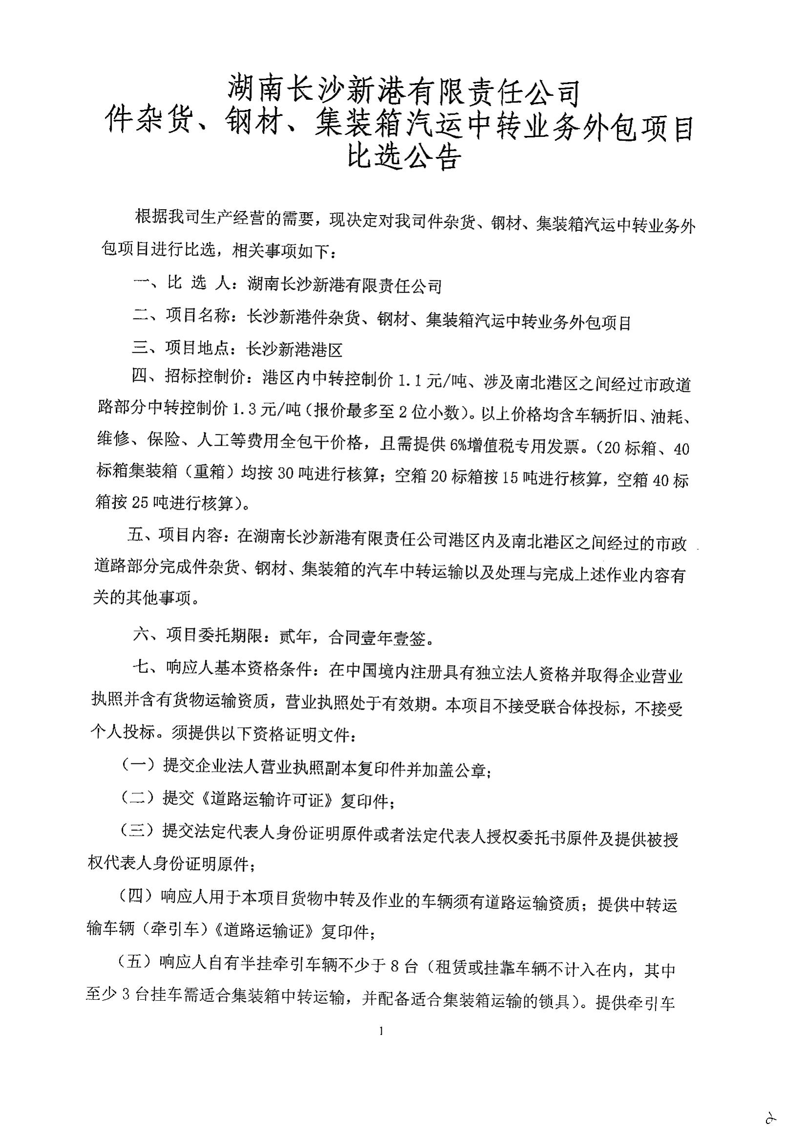長沙新港件雜貨、鋼材、集裝箱汽運中轉業(yè)務外包項目比選公告