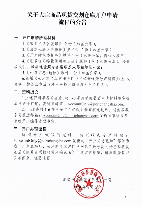 關(guān)于大宗商品現(xiàn)貨交割倉(cāng)庫(kù)開戶申請(qǐng)流程的公告