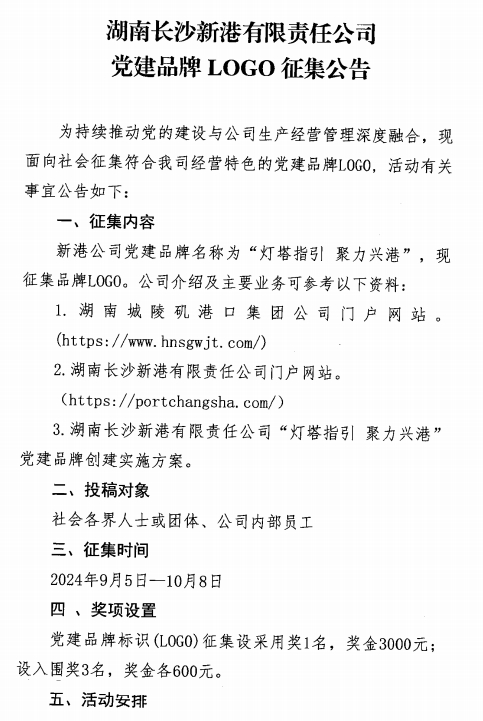 湖南長沙新港有限責(zé)任公司黨建品牌 LOGO 征集公告